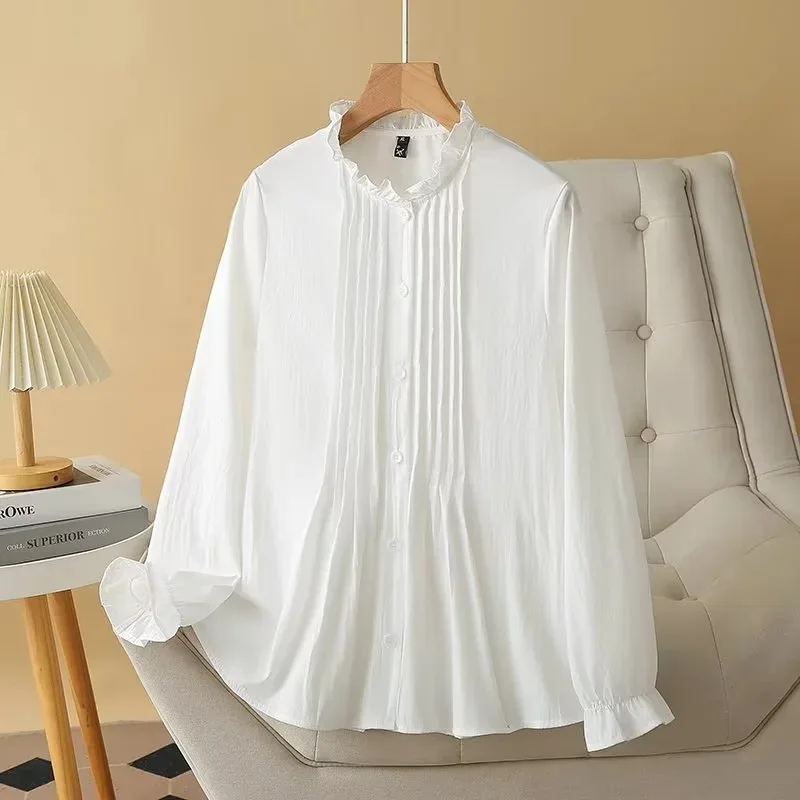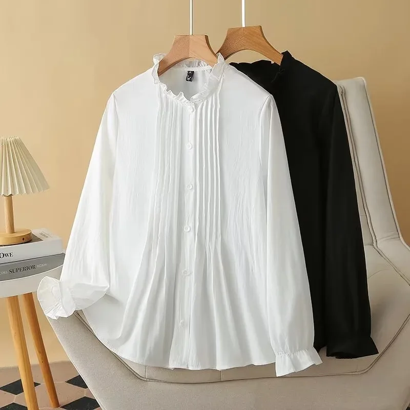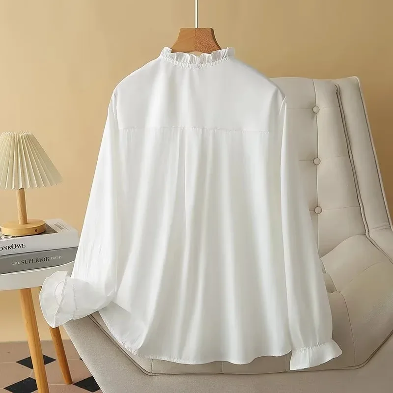 plus size Women’s shirt autumn new loose fashion casual sweet cotton Ruffle collar blouses 471